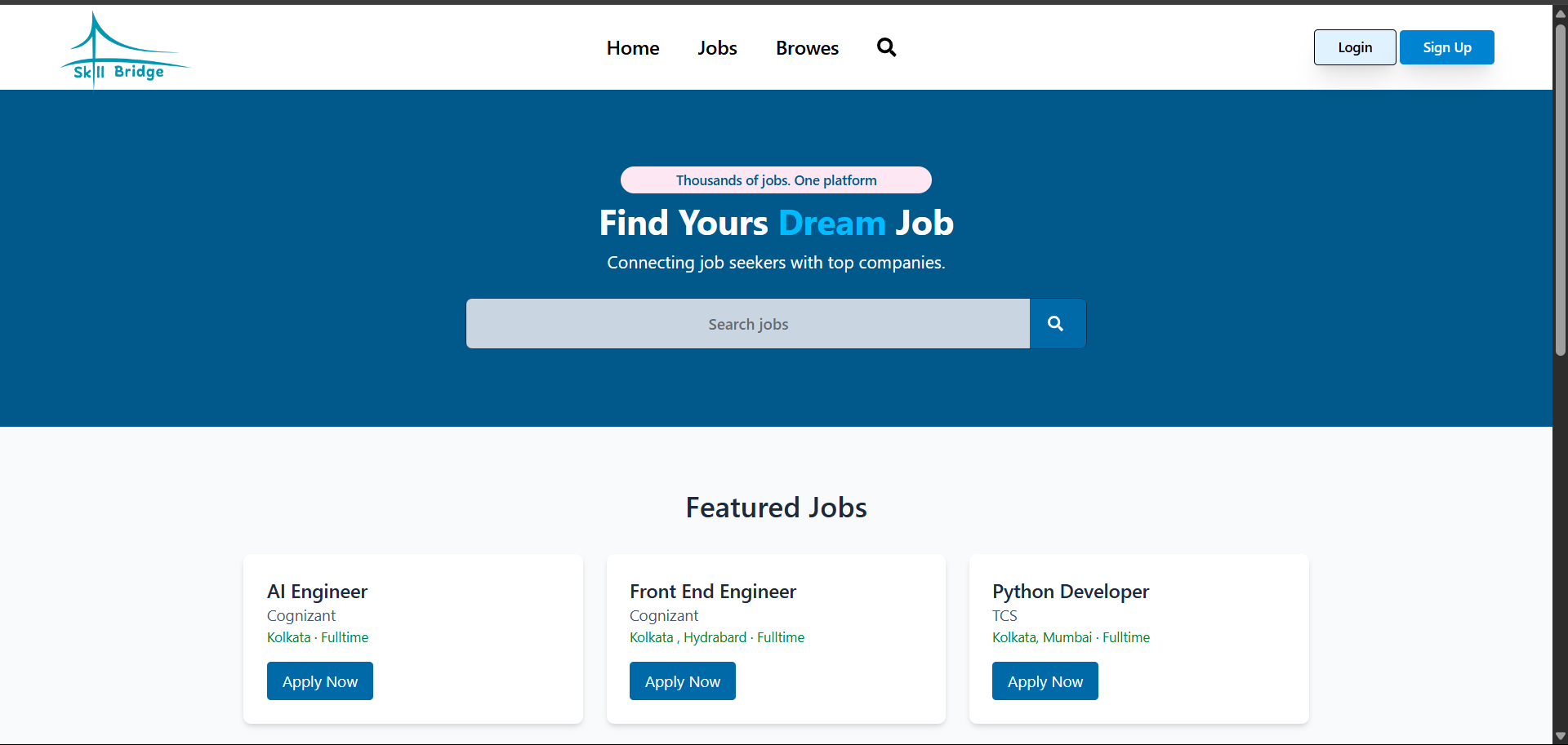 Built a full-stack job portal where users can register, login, browse jobs, and apply to openings. Developed RESTful APIs in Express.js with MongoDB for job postings, applications, and user profiles.